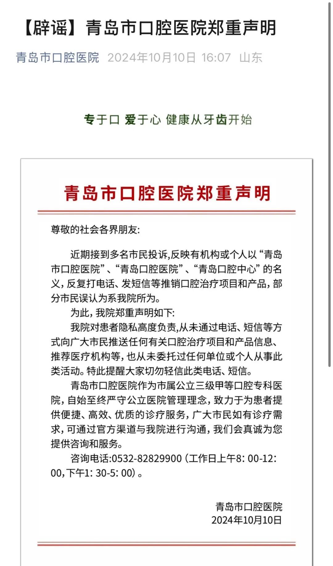 为此,全国各地的公立口腔医院包括徐州市口腔医院、南京市口腔医院、南通市口腔医院、上海市口腔医院、青岛市口腔医院等几十家医院均发布了辟谣声明。